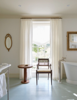 Experience the elegance and sophistication of our interior designs, featuring luxurious living rooms and elegant bathrooms with vintage decor and freestanding tubs.